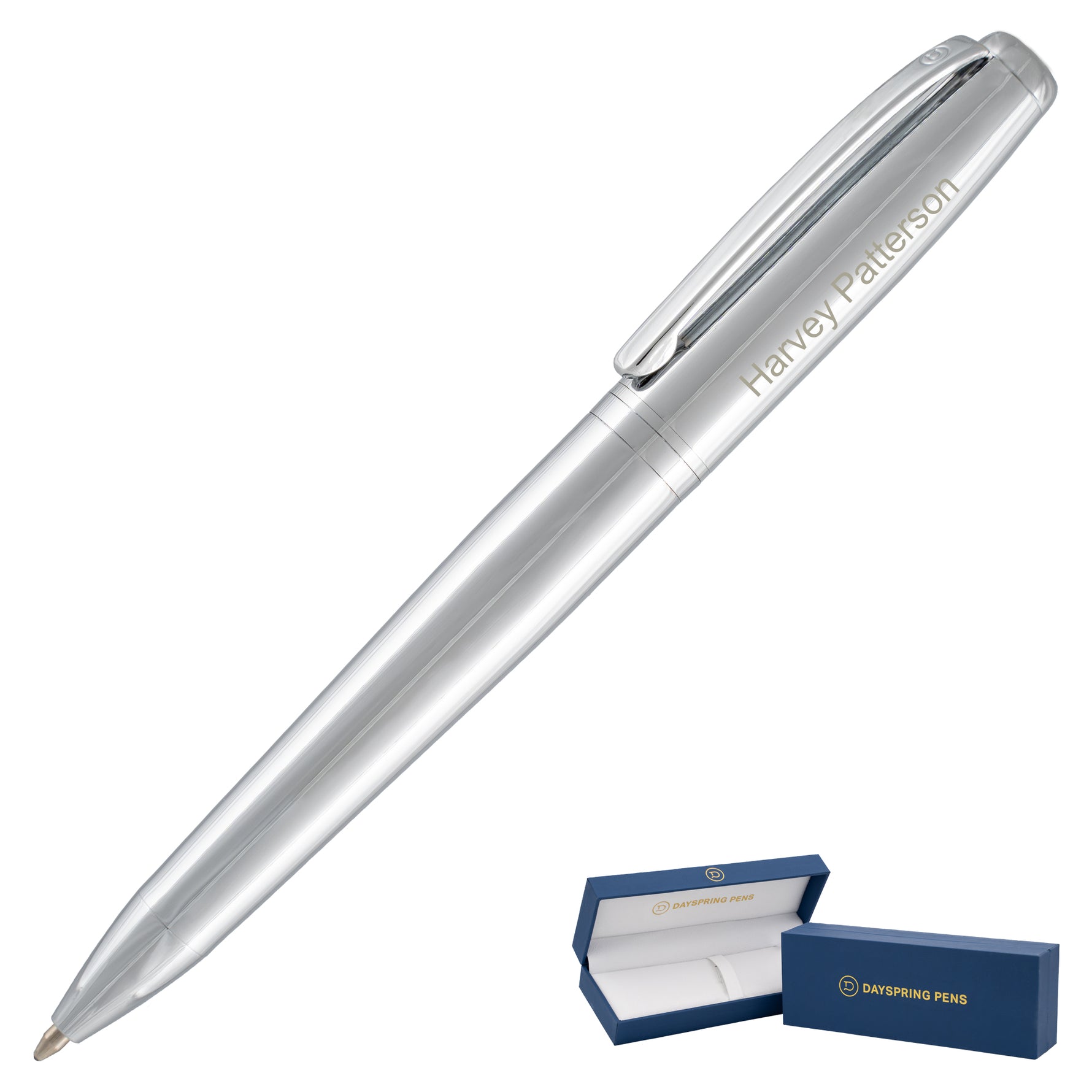 Each personalized ballpoint pen ships in a ready-to-gift Dayspring presentation box, perfect for marking professional achievements, graduations, or corporate recognition events. The permanent laser engraving process ensures your custom text or logo remains legible for the lifetime of the pen, creating a practical keepsake that actually gets used rather than stored away.