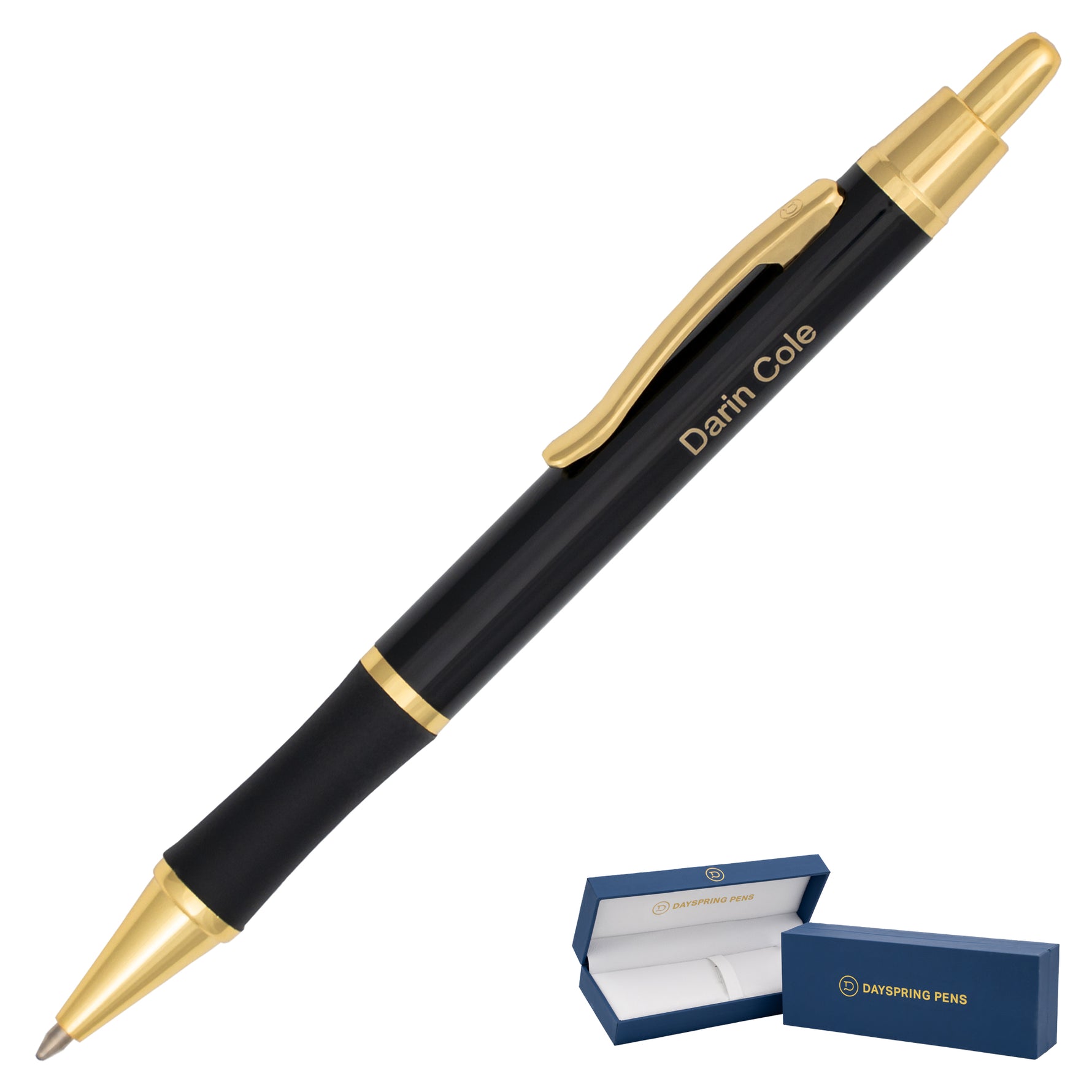 Each Monroe arrives inside a signature Dayspring Pens gift box, ready for presentation. The custom engraving process reveals the gold-tone metal beneath the black lacquer, creating a personalized message that perfectly complements the pen's gold appointments. For those seeking an executive gift that combines professional appearance with practical writing performance, the Monroe delivers remarkable value.
