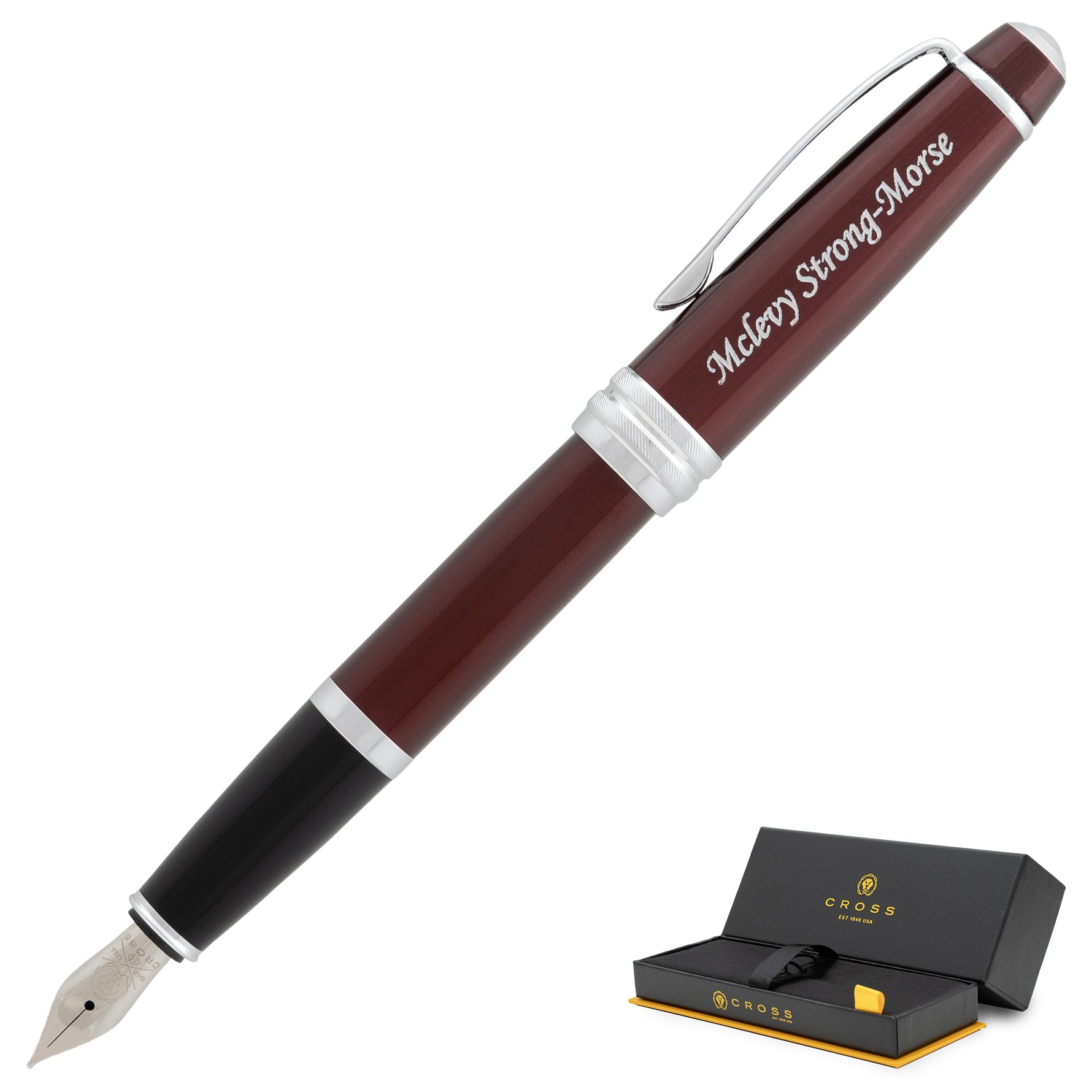 Each Cross Bailey comes in a premium gift box with a black ink cartridge, ready for immediate use. The option for personalized fountain pen engraving adds a silver-toned custom touch to the cap, making it an ideal choice for executive gifts or personal keepsakes. Backed by Cross's lifetime mechanical warranty, this pen serves as a reliable writing companion for years to come.