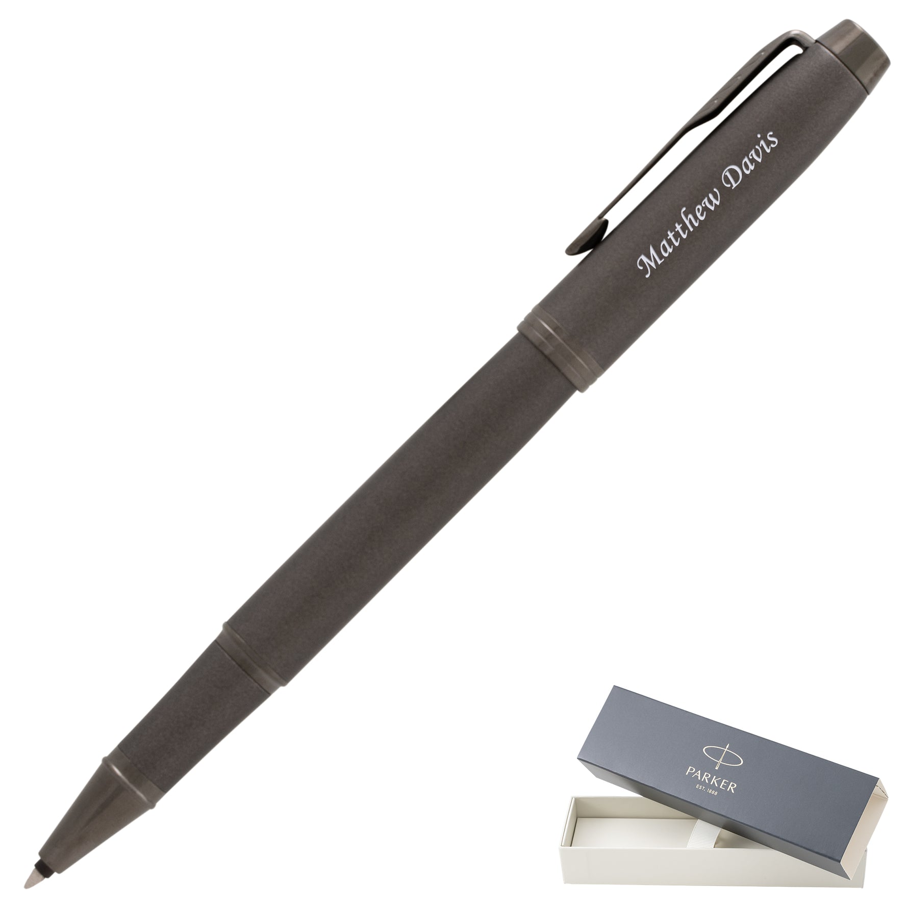 Each personalized rollerball pen arrives in Parker's signature premium gift box, pre-loaded with a black ink cartridge ready for immediate use. The pen accepts standard Parker rollerball refills available in multiple colors and point sizes, allowing customization to your specific writing preferences long after the initial ink supply runs out. Consider adding personalized engraving to transform this functional writing instrument into an engraved gift that will serve as a daily reminder of important occasions or achievements.
