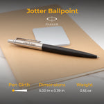 The Parker Jotter in Bond Street Black writes with a crisp, positive click mechanism that's remained virtually unchanged since 1954. Measuring 5.1 inches when deployed, this 0.7 oz pen pairs a durable thermoplastic barrel with precision-machined stainless steel components, creating the perfect balance between lightweight daily carry and substantial hand feel.