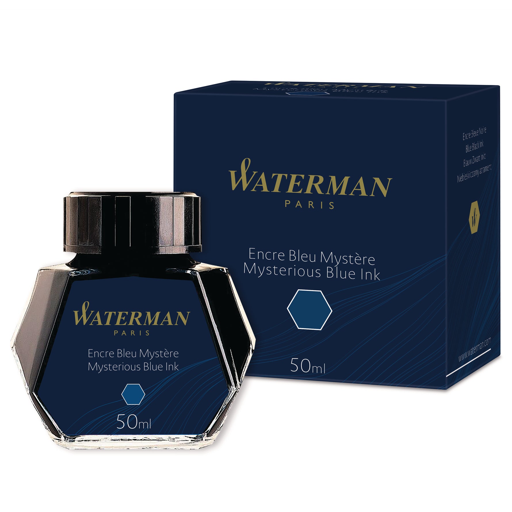 Elevate your writing into art with Waterman Mysterious Blue Fountain Pen Ink, a sophisticated dark blue-black shade that captures attention through subtle complexity. This 50ml bottle delivers ink that shifts between deep midnight blue and near-black depending on paper texture and lighting, creating writing that intrigues the eye and invites closer examination.