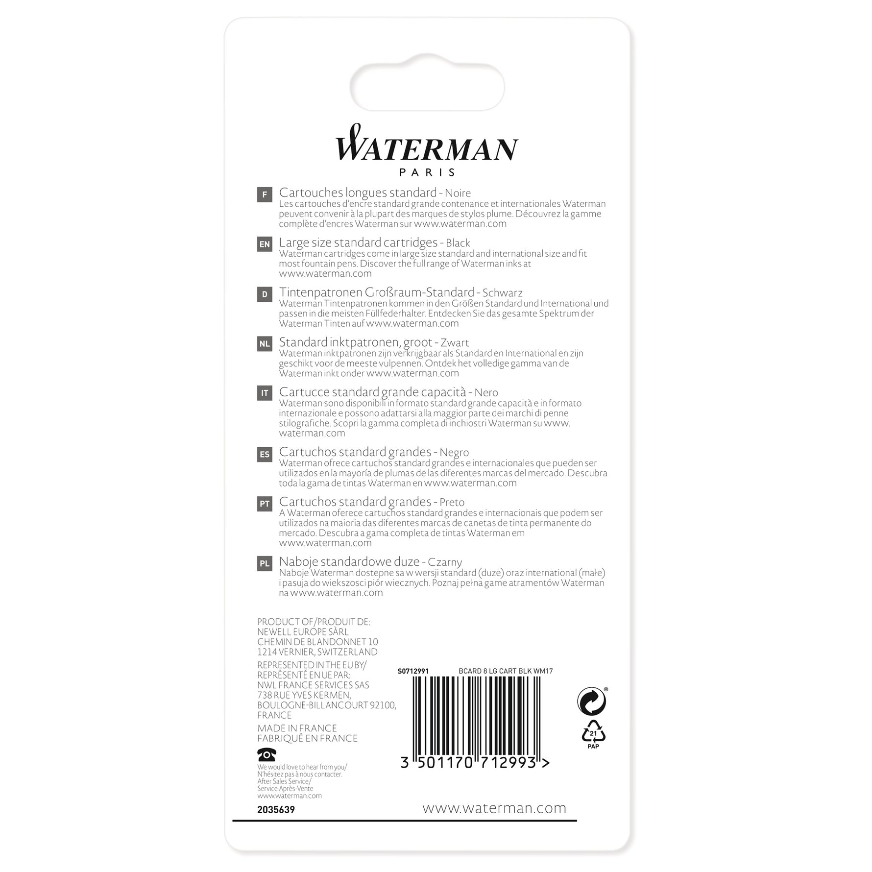 Experience uninterrupted professional writing with Waterman Long Fountain Pen Ink Cartridges in Intense Black, featuring extended-capacity reservoirs that dramatically reduce refilling frequency during demanding workdays. This 8-pack delivers the deep, authoritative black ink Waterman is renowned for, now in longer-lasting cartridges that support high-volume writing without compromising workflow.