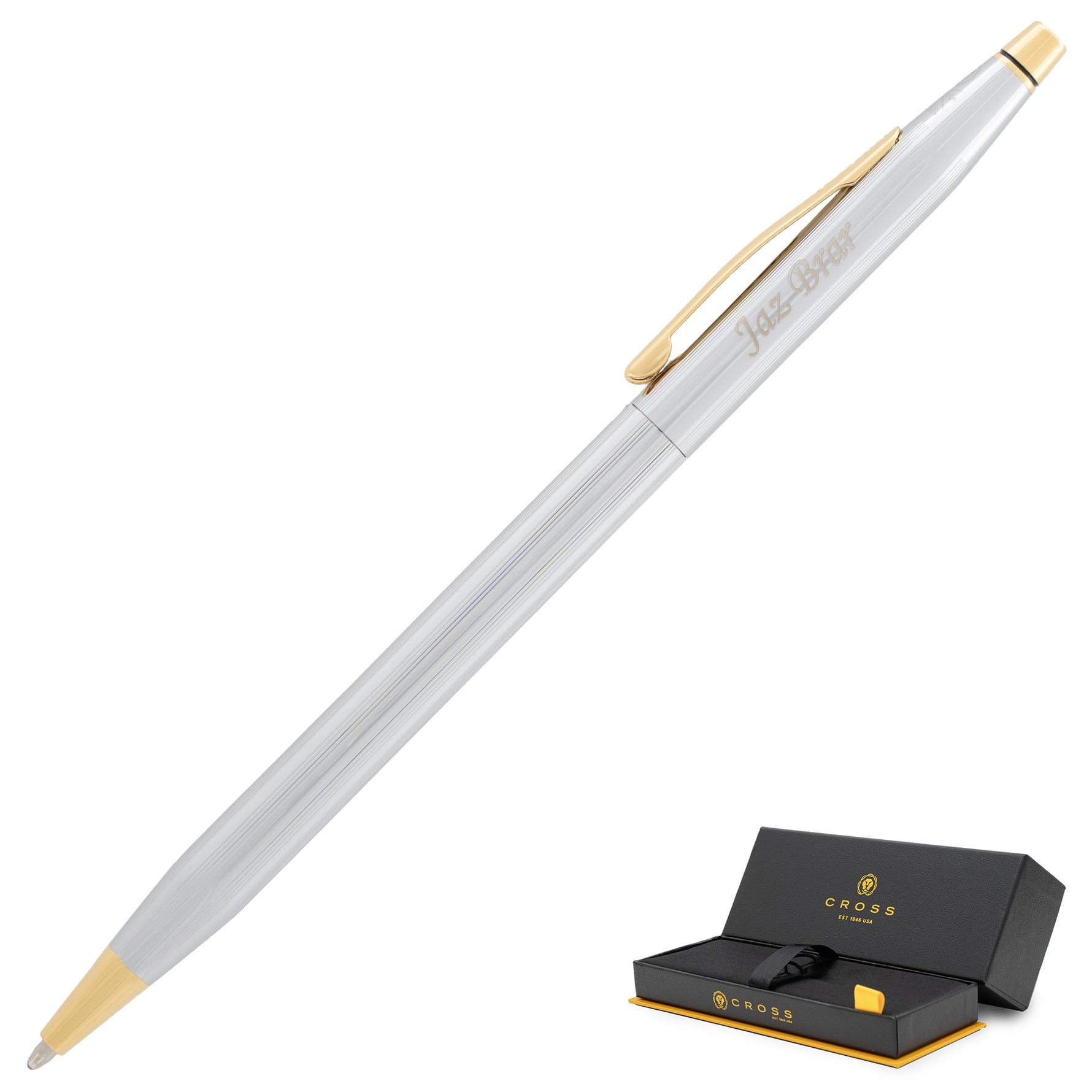 Each Cross Classic Century Ballpoint Pen comes packaged in a premium Cross gift box, complete with a pre-installed medium-point black ink cartridge. Dayspring Pens offers custom engraving services, which reveal a subtle brass tone against the chrome finish – ideal for adding initials, a name, or a short message. Backed by Cross's lifetime mechanical warranty, this pen serves as both a reliable writing tool and a cherished keepsake.